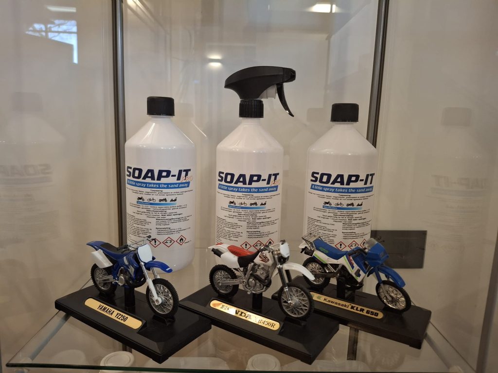 In het voorjaar van 2025 ontstond het idee om een nieuwe zeeplijn op te zetten. Geen agressieve ‘Dasty’ of andere schoonmaakmiddelen die de meeste mensen gebruiken om hun materiaal wat bevuild is met zand te reinigen. In tegenstelling tot andere schoonmaak middelen tast Soap IT plastic en onderdelen van Fiets/Motor/Grasmaaier/Gereedschap/etc. niet aan.